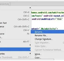 Android Studio 썸네일형 리스트형 안드로이드 스튜디오 프로젝트에 assets 폴더 생성하기 안드로이드 스튜디오 프로젝트에 assets 폴더 생성하기 app 폴더를 클릭하고 New>Folder>Assets Folder 클릭 [Finish] 클릭 더보기 안드로이드 스튜디오에 jar 임포트하기 안드로이드 스튜디오에 jar 임포트하기 File>New Module 선택 Import .JAR/.AAR Package 선택 [Next] 클릭 File name 옆에 Search 버튼을 클릭해서 원하는 jar를 검색하고 [Finish] 클릭 아래와 같이 import 된 jar 확인 File>Project Structure를 클릭한 후 app 항목의 Dependencies를 선택 한 후 Module Dependency를 선택한다. 아래 선택한 모듈의 jar이 포함된 것을 확인할 수 있다. 더보기 Android Studio 테마 에디터 사용하기 Android Studio Theme Editor 사용하기 styles.xml를 클릭하고 우측 상단의 Open editor를 클릭한다. 아래와 같이 테마 에디터가 보여지고 각각의 항목에 맞는 테마를 수정 변경할 수 있다. 더보기 안드로이드 스튜디오의 폰트 및 글자 크기 변경하기 안드로이드 스튜디오의 폰트 및 글자 크기 변경하기 안드로이드 스튜디오의 폰트 및 글자 크기를 변경하기 위해서는 File 메뉴에서 Settings를 선택한다. Settings>Editor>Colors & Fonts>Font를 선택한 후 Save As를 누른다. Save As를 누르면 새로운 설정을 저장할 수 있는 이름을 지정할 수 있고 이름 지정 후 OK 버튼을 누른다. Primary font를 변경할 수 있는 Size를 변경할 수 있다. 변경한 후 OK 버튼을 누른다. 더보기 Android Studio 안드로이드 스튜디오에서 패키지 변경하기 안드로이드 스튜디오에서 패키지 변경하기 패키지를 변경할 때는 아래와 같이 변경하고자 하는 패키지명에 마우스 커서를 올려두고 마우스 오른쪽 버튼을 누르면 메뉴 창이 보여지고 Refactor에 Rename을 선택한다. test를 jworld로 변경한 후 [Refactor]를 눌러도 되고 [Preview]를 눌러도 됨. 바뀌는 부분을 확인한 후 [Do refactor] 눌러 변경. 패키지를 변경한 후에 R 파일을 인식하지 못 하면 Tools>Android>Sync Project with Gradle Files를 눌러 변경 설정을 반영해 주면 R 파일을 잘 인식함 더보기 이전 1 다음